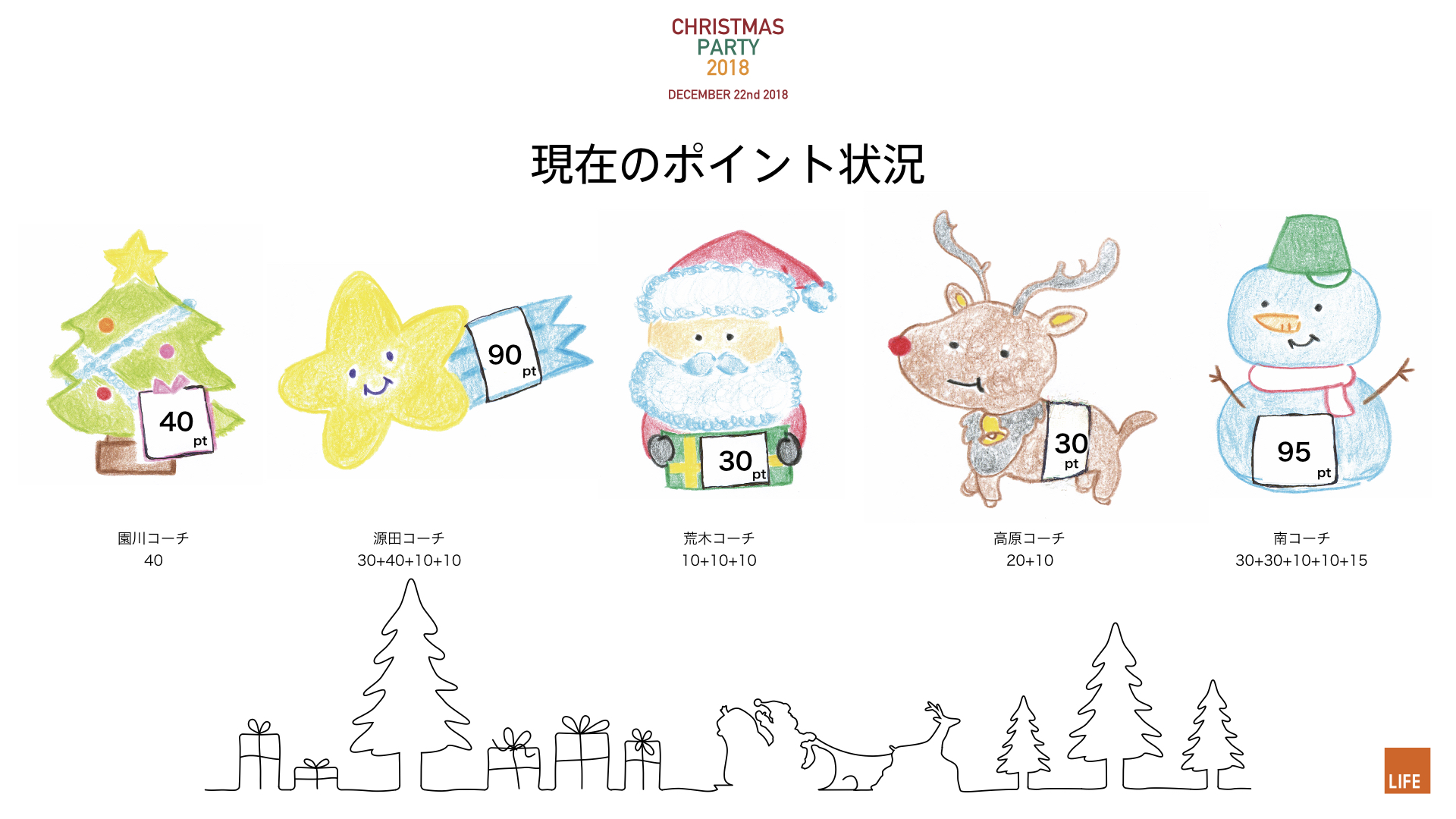 そして、会員様お一人ずつ、交換用のクリスマスプレゼントをご用意いただきました。