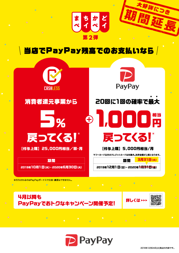 今回の認定と共にPayPay社の「まちかどペイペイ 第二弾」キャンペーンの対象店舗となっております。